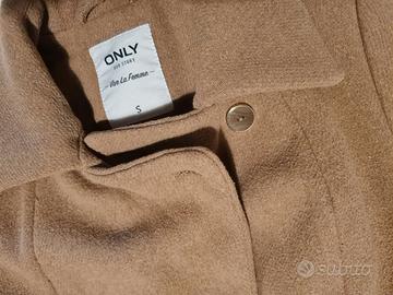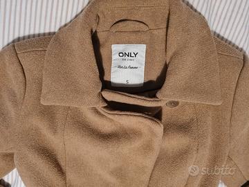 Cappotto only color cammello, con cintura in vita e lungo fino al ginocchio. Taglia S.