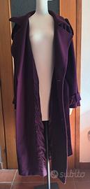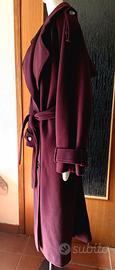 Cappotto invernale oversize (veste comodamente una taglia 54) lungo con spalline, mantella posteriore e cintura, in misto lana con interno in raso, color borgogna. In ottime condizioni, con abbottonatura a doppiopetto.