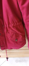 Parka bordeaux con fodera interna in morbido tessuto bianco.
