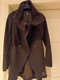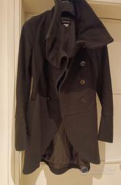 cappotto midi Patrizia Pepe impura lana marrone stile militare con doppio allacciatura sul petto con la possibilità di chiudere il collo fino all'altezza del viso. vi sono due tasche laterali senza chiusura.