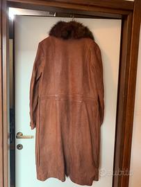Cappotto Donna in vera pelle e pelliccia lungo senza bottoni con lacci tg.46
