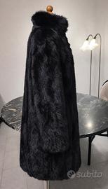 Splendido cappotto in pelliccia rat mousquet, di colore nero profondo con leggere e naturali sfumature calde - taglia 44.