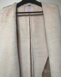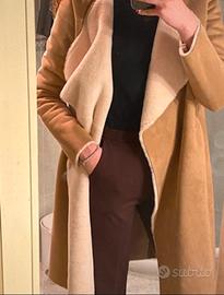 marrone chiaro effetto scamosciato con cintura e pelliccia sintetica morbidissima color panna