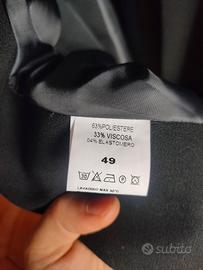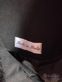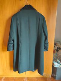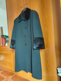 Cappotto nero con collo e polsini in pelliccia sintetica. Interno foderato, taglia 49, made in Italy.