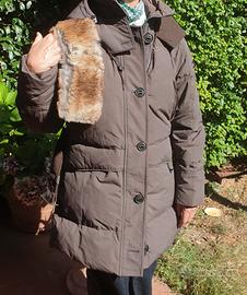 Peuterey originale_Bellissimo cappotto da donna. Taglia 44, colore marrone, con collo di pelliccia staccabile e cappuccio.
