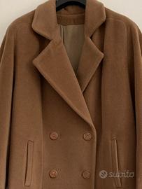 Modello doppio petto colore cammello con maniche alla raglan