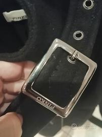 Cappotto Pinko in lana nera taglia 42, media lunghezza, sciancrato, si chiude con cerniera e cintura. Made in Italy. Messo pochissimo. La larghezza del collo alto si può regolare tramite un piccolo cinturino.