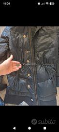 Piumino blu scuro Stefanel con vera piuma, 90% piumino e 10% piuma, leggerissimo addosso e caldo. Laccio in vita regolabile. Il pelo del cappuccio può essere tolto come si vede in foto, così il piumino può essere lavato anche in lavatrice.