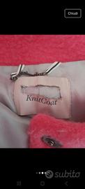 Giubbetto a poncho knit coat, a righe grandi grigio chiaro e rosa fucsia.