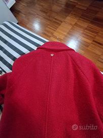 Cappotto al ginocchio taglia 42 con manica a 3/4. Ha una bellissima tonalità di rosso, tendente al geranio. Foderato e morbido. Indossato una sola volta per un'occasione particolare, ha le tasche ancora cucite. Veste S-M.