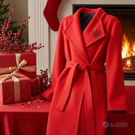 Cappotto Rosso Vintage con Ricamo ; Nuovo e creato interamente a mano ; in Lana