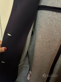 Cappotto in neoprene blu con risvolto maniche a contrasto grigio . Marca Motivi taglia xs veste una 40 -42