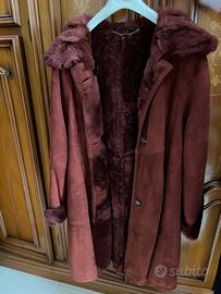 Cappotto da donna lungo Shearling, taglia 42, colore bordeaux. Come nuovo, vendesi 800€ tratt. Chiamare al 3468388653