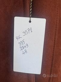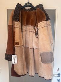 Cappotto shearling da signora tg.48 in vera pelle d montone entrefino spagnolo ; tricolore marrone,tabacco e beige;ricamato a mano, collo in pelliccia astrakan; made in Italy by Robrik Confezioni