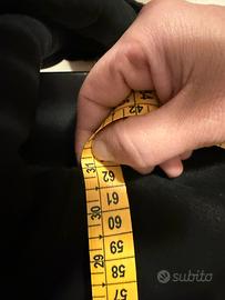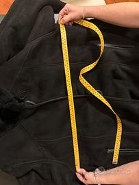Modello: Cappotto lungo in shearling (pelle scamosciata nera all’esterno + vera pelliccia di agnello/montone all’interno, molto folta e in ottimo stato). • Dettagli: Collo e polsini in pelliccia nera, chiusura con bottoni, tasche laterali con patta, taglio classico dritto. • Marchio: SHEARLING con scritta “GUARANTEED” e “BORGO ARTIGIANI”— tipica etichetta di produzione artigianale italiana di buona qualità. • Condizione: Ottima. La pelle scamosciata è uniforme, la pelliccia interna folta e sana. Misure rilevate dalle tue foto (approssimative) Taglia 48 I modelli neri con pelliccia interna sono ricercati per praticità e stile.