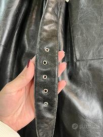 Cappotto / trench da donna in vera pelle nera, stile vintage Y2K.
