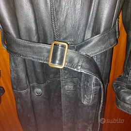 Cappotto Trench In VERA Pelle Nera Da Uomo