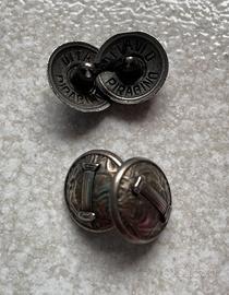 Bottoni particolari in metallo, con incisione del marchio all’interno, con fermo a bottoncino (cuciture rinforzate)