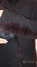 particolare ed elegante cappottino nero con inserti di pelliccia con inserti di pelliccia di Cavalli