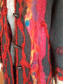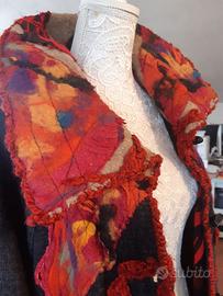 Cappotto unico al mondo in quanto realizzato a mano da un' artista tessile per un concorso. Lana merinos con lavorazione feltro e nuno feltro, double face . taglia 44-46