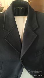 Cappotto uomo blu scuro "Made in Italy" come nuovo perché indossato una volta per una cerimonia e poi, aumentando di taglia, è rimasto nell' armadio. Il tessuto è 80% lana, 10% cachemire, 10% PA. La lunghezza dalla spalla cm 95. La chiusura è a 3 bottoni, 4 bottoni sulla manica. Tessuto molto morbido ma sostenuto, come serve per cadere bene e dalla foto interna si vede la fodera perfettamente come nuova. Spalle cm 50, lunghezza da spalla cm 92, manica cm 67
