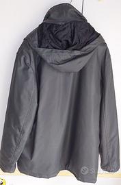 Vendesi per inutilizzo cappotto uomo effetto pelle, 100% poliestere con cappuccio rimovibile, 2 tasche e una interna, chiusuta zip con bottoni, polsiera regolabile tramite bottone, taglia M
