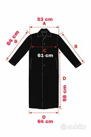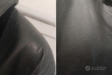 Vendo cappotto lungo uomo Conbipel in vera pelle nera, taglia 50. Modello classico ed elegante, stile vintage, con chiusura a bottoni e tasche laterali. Interno foderato in 100% viscosa. Misure circa: Spalle 53 cm Manica 64 cm Torace 61 cm Lunghezza 98 cm Fondo 64 cm Il cappotto è in buone condizioni generali, ma presenta alcuni piccoli segni del tempo e dell’uso, tra cui leggere imperfezioni della pelle e un piccolo difetto visibile in foto. Per questo motivo viene venduto come usato con condizioni ben mostrate nelle immagini. Capo originale Conbipel, in vera pelle, ideale per chi cerca un cappotto lungo dal taglio classico e vintage. Consegna a mano. Parole chiave cappotto pelle uomo, cappotto lungo, vera pelle, Conbipel, vintage, taglia 50, nero, giacca pelle uomo