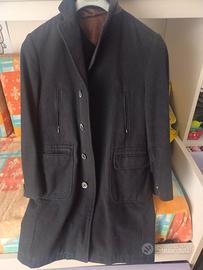 Fodera in pelle marrone dietro il colletto e sui gomiti.