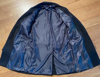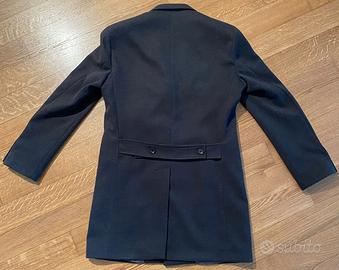 Cappotto uomo grigio scuro. Misto lana. Taglia 48. Tasche con pattina. Martingala sul retro.