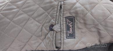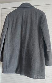 Elegante cappotto grigio doppio petto da uomo, taglia 50, lunghezza media, con imbottitura interna trapuntata.