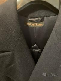 Cappotto blu doppio cachemire da uomo, doppiopetto con bottoni e spacco con martingala dietro, produzione sartoriale milanese, taglia 48/50.