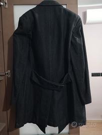 Cappotto per uomo, in condizioni perfette, nessun difetto, usato poche volte; colore nero, trama a spighe. Tasche interne e esterne, lunghezza 95cm, spalle 45cm, manica 64cm. Non troppo pesante, adatto per più stagioni. Necessita solo di una stirata