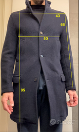 Vendo raffinato cappotto da uomo in pura lana, firmato SWS – Sinful. Taglia 50 con vestibilità regolare. Il colore è un blu scurissimo, quasi nero, molto elegante. Il tessuto è caldo, strutturato e ideale per l’inverno. Indossato pochissime volte: condizioni pari al nuovo. Caratteristiche principali • Made in Italy • 100% lana • Chiusura frontale con bottoni • Collo alto • Tasche frontali con patta Misure (capo steso) • Lunghezza totale: 95 cm • Manica: 66 cm • Spalle: 43 cm • Torace (ascella-ascella): 50 cm Un capo di qualità, dal taglio sartoriale e dal design senza tempo: perfetto per chi cerca eleganza e materiali pregiati.