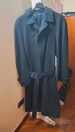 Cappotto invernale da uomo firmato Uomolebole. Modello a taglio classico, con revers tradizionali, chiusura frontale con bottoni e cintura e taschino sul petto. L’interno è completamente foderato e include una tasca interna con bottone. Il capo è in ottime condizioni, senza difetti, segni di usura o scolorimenti. Taglia L-XL