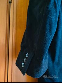 Scollo classico, chiusura con bottoni, doppia tasca frontale. Bottoni decorativi sulla parte finale della manica, foderato internamente, in pura lana vergine.