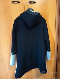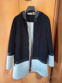 Cappotto con cappuccio nero e grigio con zip. Taglia unica