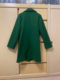 Cappotto da donna color verde intenso, dal taglio classico ed elegante. Modello dritto con revers, chiusura frontale a due bottoni e pratiche tasche laterali. Linea pulita e versatile. Tessuto morbido e confortevole. Taglia unica