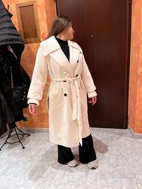 Cappotto Vicolo taglia S, modello over, doppiopetto con cintura e spacchi laterali. Tessuto: 50% lana / 50% poliestere. Particolarità: collo e polsini in lana removibili tramite bottoni (come da foto). Capo hand made, tagliato e cucito a mano. Praticamente nuovo, elegante, comodo e molto versatile. 👉 Vendo esattamente quello che si vede in foto 📍 Zona Valle Fiorita (Casilina - Metro Due Leoni)