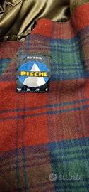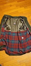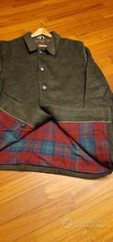 Materiale: Esterno in misto lana di alta qualità (Loden style). Interno parzialmente foderato con un bellissimo motivo tartan (plaid) rosso e blu.