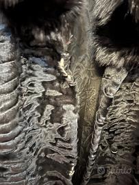 Cappotto in vera pelle con collo di pelliccia,anni 60,presenta delle zone in cui è rovinato