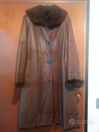 Cappotto vintage di pelle con collo, polsi e interno completamente in pelo. Bottoni originali. La taglia indicata sul capo è la 44 ma la vestibilità è 48. Misure: spalle cm 45, petto cm 62, maniche cm 65 e lunghezza totale cm 112. Il cappotto è stato accorciato rispetto alla lunghezza iniziale. Usato molto poco, è in ottime condizioni.