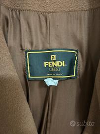 Cappotto vintage Fendi in lana e cashmere taglia 46, elegante, confortevole e caldo. Ha bottoni importanti e due ampie tasche. Presenta qualche piccolo difetto su cuciture e parti interne, comunque in punti poco visibili. Nel complesso è in ottimo stato, vendo per inutilizzo. Lunghezza totale (cm): 120 Lunghezza manica da collo (cm): 70 Torace ascella ascella (cm): 60