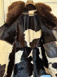 Cappotto vintage ZILLI, prestigiosa maison francese di altissimo lusso, realizzato in pelle scamosciata naturale con interno completamente foderato in shearling/pelliccia naturale 100%. Capo caldo, strutturato e raffinato, espressione della grande manifattura artigianale ZILLI.