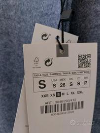 Vendo cappotto Zara mai indossato, ancora con etichetta originale. Vendo perché è un regalo e per me veste troppo grande. Un capo elegante e raffinato, che unisce stile contemporaneo e comfort. Il colore raffinato, una sfumatura tra grigio e azzurro chiaro, lo rende versatile e adatto a qualsiasi occasione, dal look casual a quello più formale. Taglia: S, ma il modello è oversize e veste comodamente per chi porta M (Fare riferimento alle taglie di Zara). Spalle: circa 41 cm, con taglio sceso (“dropped shoulders”), che conferisce un effetto morbido e contemporaneo. Lunghezza: circa 110 cm Manica: circa 54 cm Realizzato con cura nei dettagli è ideale per arricchire il guardaroba con un tocco di classe senza rinunciare al comfort. Consiglio il ritiro a mano, ma è disponibile anche la spedizione.