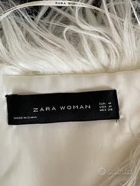 Cappotto Zara in pelliccia sintetica bianca, taglia M, dimensioni solo fronte (per misura completa 360 raddoppiare): larghezza spalle 42 cm, lunghezza manica 65 cm, larghezza vita 50 cm, lunghezza totale 70 cm, chiusura con rampini, usata pochissimo