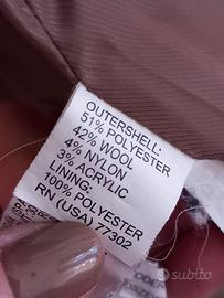 In misto lana, caldo e morbido. Trama a spina di pesce. Taglia L ma veste meglio una M. Ha un ampio collo che diventa cappuccio e si chiude con un bottone, che si è staccato (c'è l'originale di riserva)