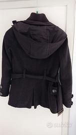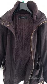 Bellissimo cappotto da donna di Zara, messo pochissimo, colore marrone e cintura fibbia bronzo (ma è carino anche senza cintura). In panno e lana. Presenta collo alto e cappuccio staccabile, manica lunga e tasche sul davanti. Interno foderato, chiusura con cerniera e bottoni automatici.