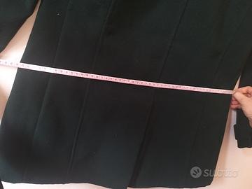 marchio di abbigliamento italianoZuiki. Caratteristiche del prodotto Marca:Zuiki, un'azienda con sede a Napoli che propone abbigliamento e accessori per la moda giovane femminile. Tipologia:Si tratta di un cappotto da donna. Colore e Materiale:Il capo è di coloreverde scuro(descritto in articoli simili come verde petrolio o verde foresta) e presenta una finitura che ricorda lalanao il velluto. Dettagli:Presenta una chiusura con bottoni scuri circolari.