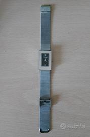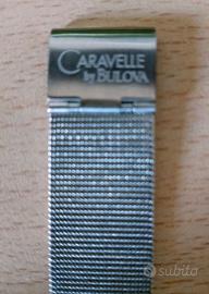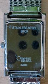 Orologio donna Caravelle by Bulova. Cassa rettangolare interamente in acciaio, 30 mm, quadrante Blu Navy, cinturino maglia Milano. Perfettamente funzionante, segni di usura sulla cassa visibili solo con l'ingrandimento o in certe condizioni di luce, ma che comunque giustificano un prezzo così basso.