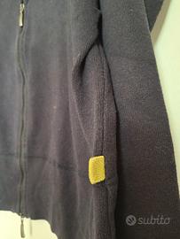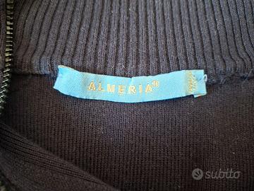Cardigan Almeria Blu con Zip Doppia Modello 100% cotone con collo alto e cerniera a doppio cursore. Made in Italy Taglia M Ampiezza delle spalle: 42cm Lunghezza: 58cm In ottime condizioni. Poco usato, Nessuna imperfezione